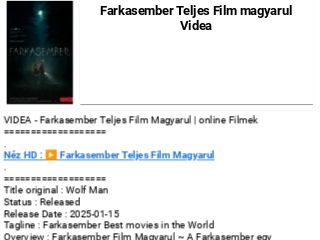 VIDEA - Farkasember Teljes Film Magyarul | online Filmek