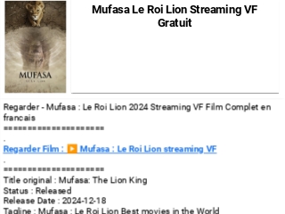 Mufasa Le Roi Lion Streaming VF Gratuit