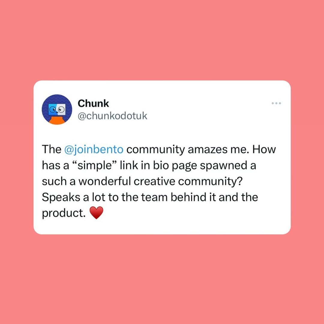 Bento is your personal page to show everything you are and create. A link in bio, but rich and beautiful β¨