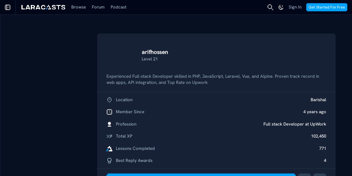 Experienced Full-stack Developer skilled in PHP, JavaScript, Laravel, Vue, and Alpine. Proven track record in web apps, API integration, and Top Rate on Upwork