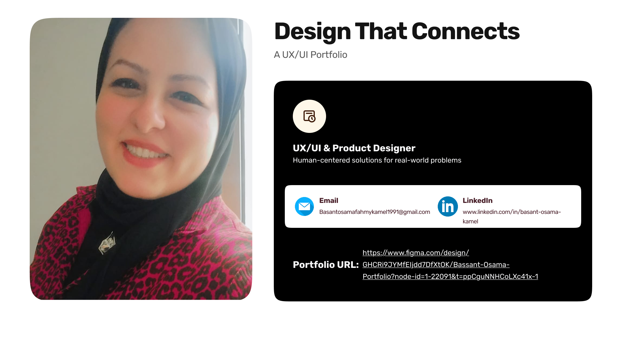 I’m Bassant Osama Fahmy Kamel, a Senior UX/UI Product Designer focused on crafting user-centered, impactful designs that align with business goals.