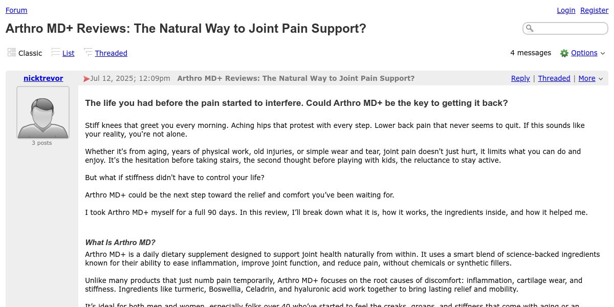 Forum - Arthro MD+ Reviews: The Natural Way to Joint Pain Support?