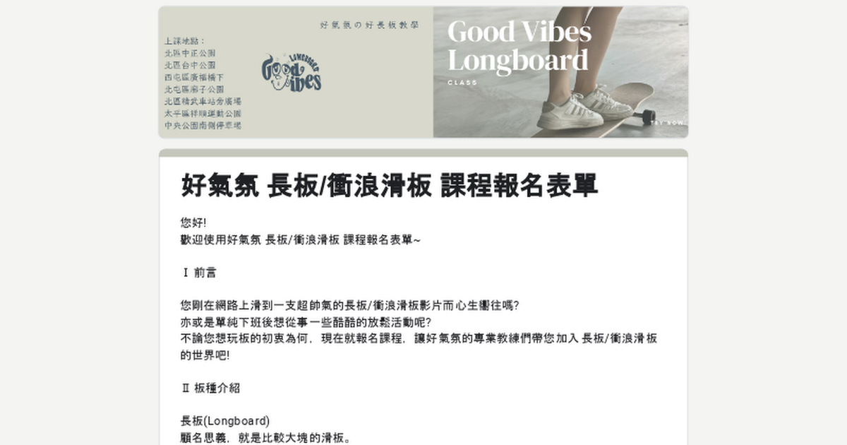 好氣氛 長板/衝浪滑板 課程報名表單
