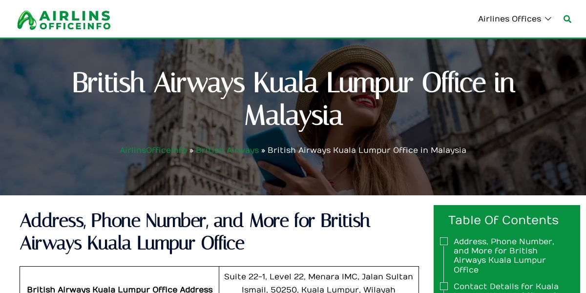 Choose the British Airways Kuala Lumpur Office in Malaysia for a superior travel experience backed by expert support. The office provides extensive services, from booking confirmations to managing cancellations and refunds.