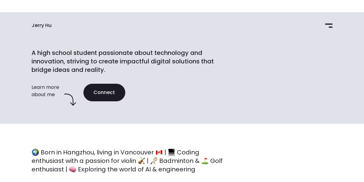 ๐ Born in Hangzhou, living in Vancouver ๐จ๐ฆ | ๐ป Coding enthusiast with a passion for violin ๐ป | ๐ธ Badminton & โณ Golf enthusiast | ๐ง Exploring the world of AI & engineering
