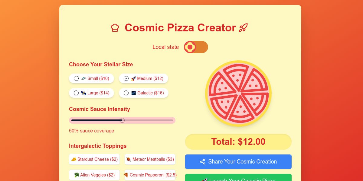 pizza customizer app | managing state locally vs in the url |