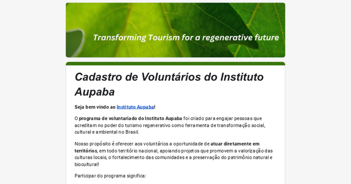 Cadastro de Voluntários do Instituto Aupaba