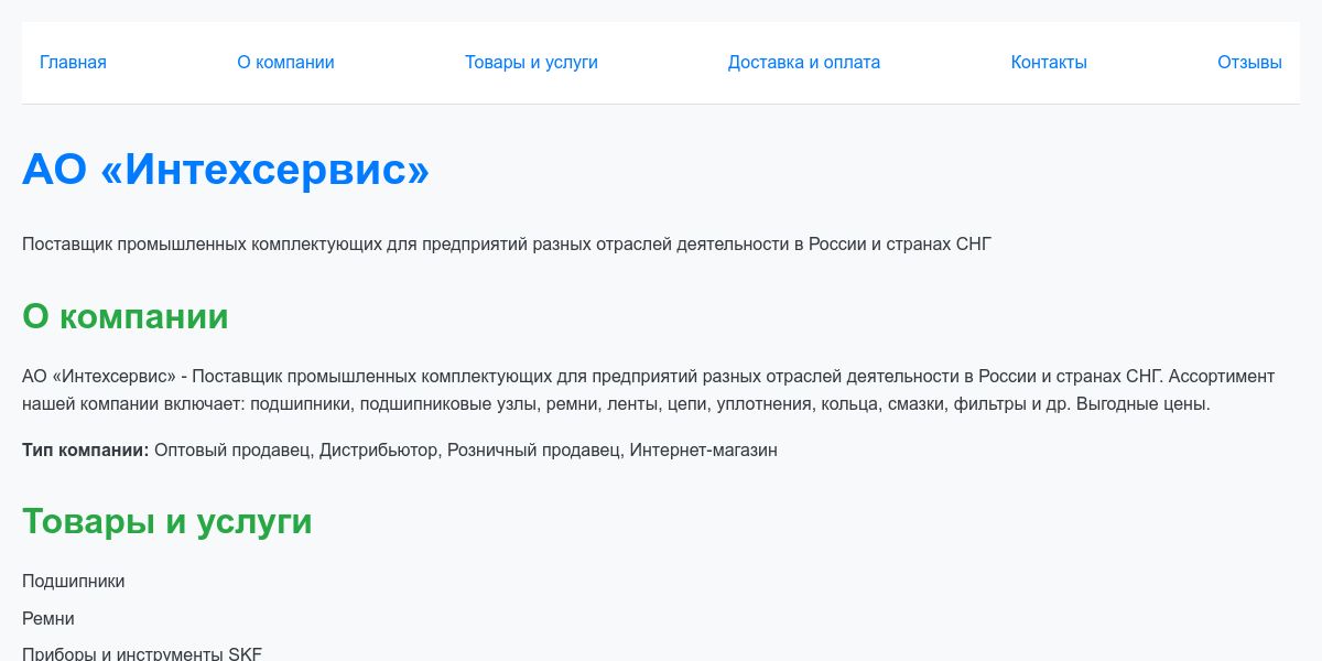 АО «Интехсервис» - Поставщик промышленных комплектующих для предприятий разных отраслей деятельности в России и странах СНГ.
