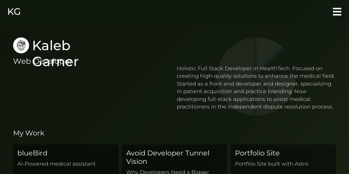 Hi, I’m KG! A self-proclaimed professional nerd passionate about tech. I’ve been a professional in the web development space since 2022. Building the future, one line of code at a time.
