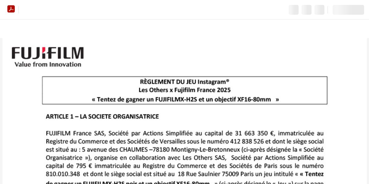 Règlement Jeu Concours Fujifilm