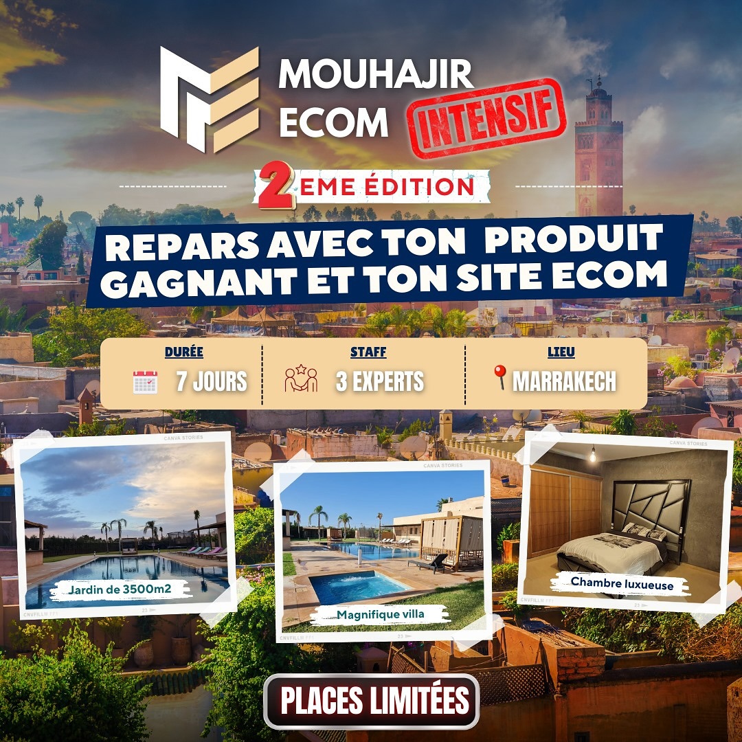 Découvrez Mouhajir-ECOM pour lancer votre boutique en ligne de A à Z de manière entièrement légale. Échappez au salariat et devenez votre propre patron grâce à une formation complète qui couvre tous les aspects nécessaires pour réussir dans le e-commerce.