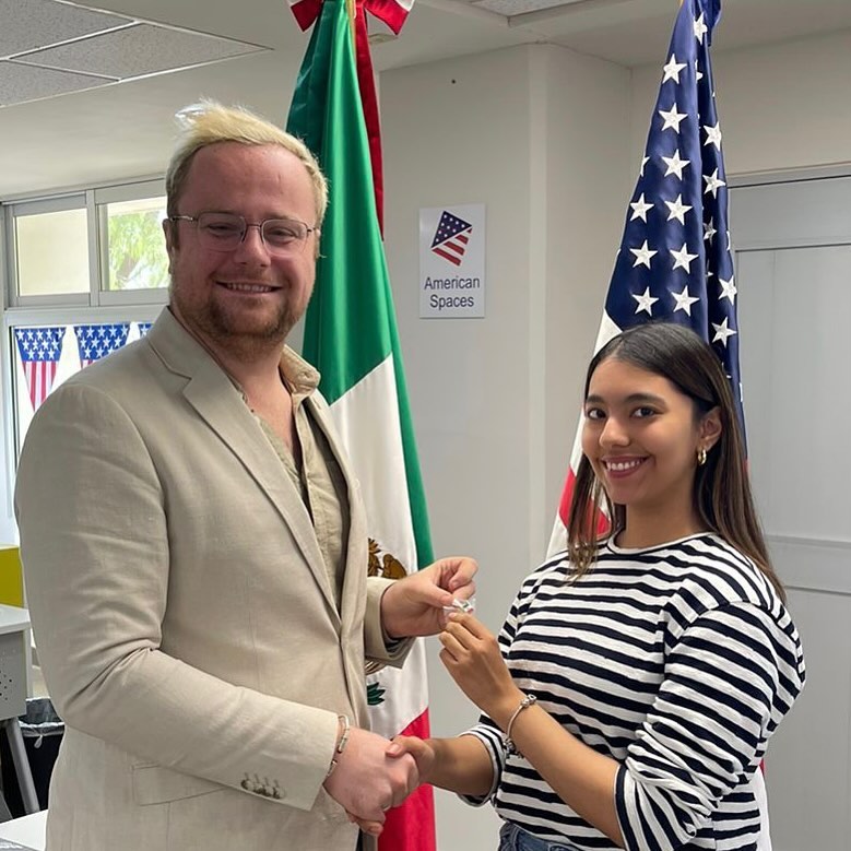 Natalia Camacho with the Consul Rafael Barceló