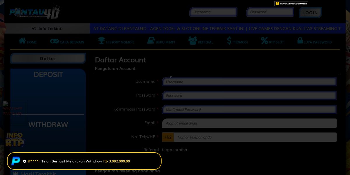 DAFTAR & LOGIN PANTAU4D