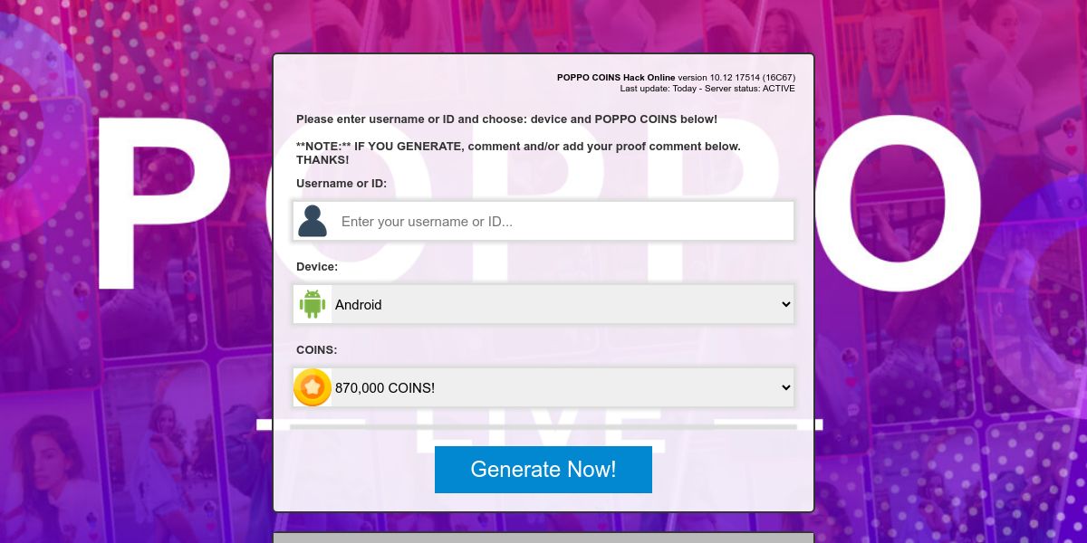 POPPO LIVE hack coins