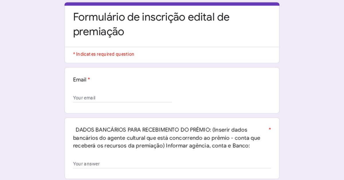 Formulário de inscrição edital de premiação