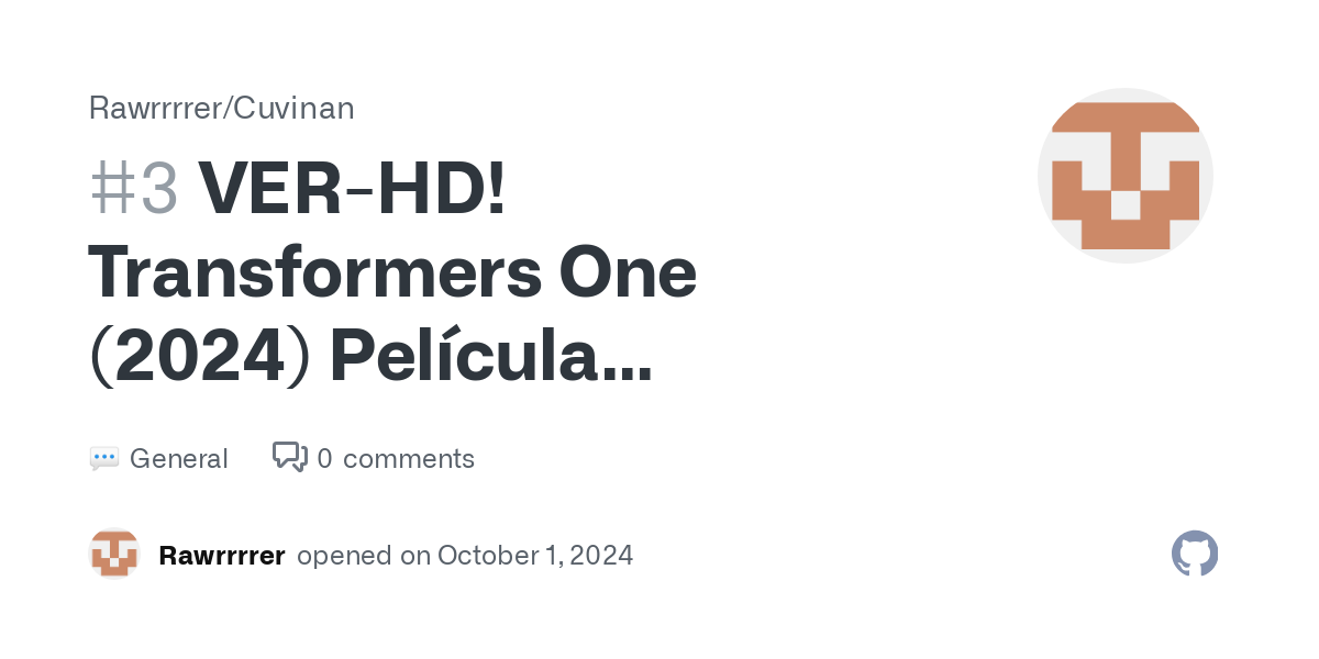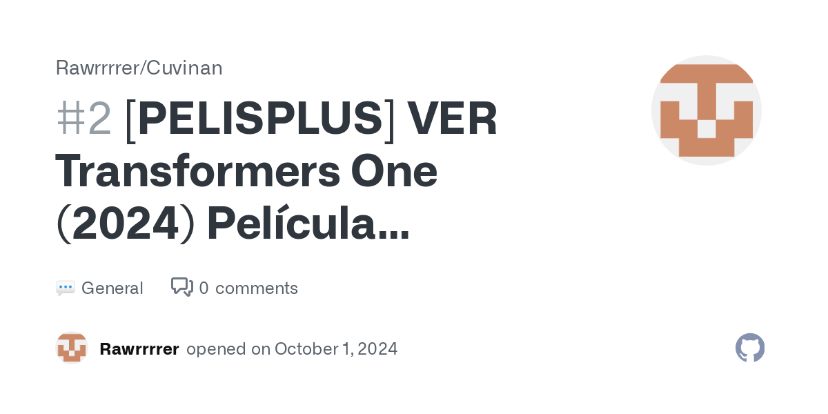 [PELISPLUS] VER Transformers One (2024) Película Completa Gratis en Español · Rawrrrrer/Cuvinan · Discussion #2