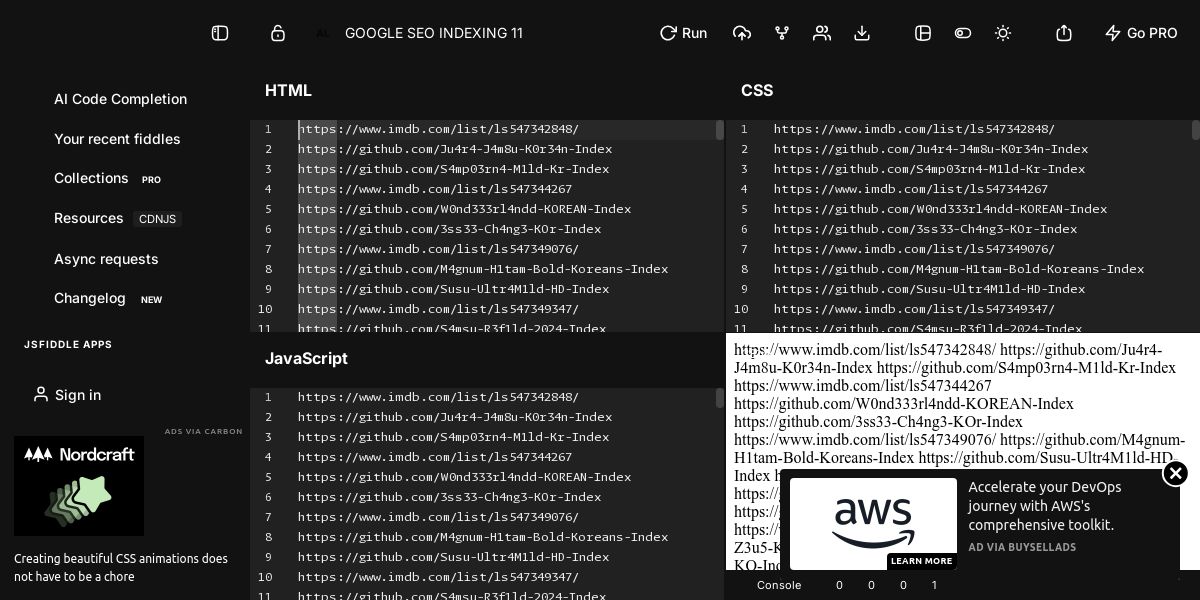 GOOGLE SEO INDEXING 11 - JSFiddle - Code Playground