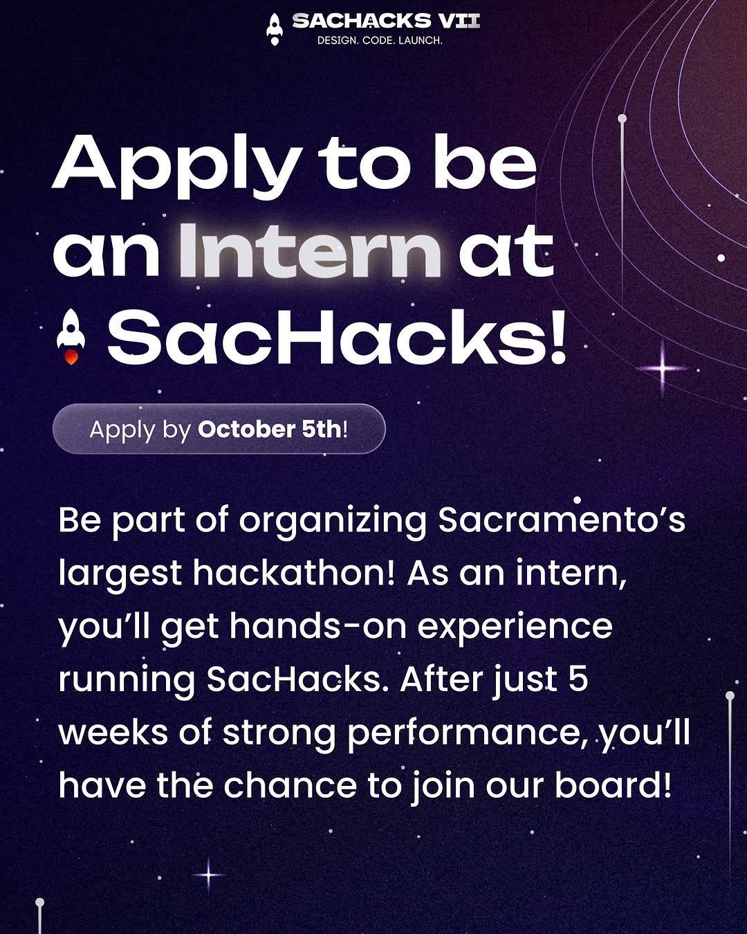 This year at SacHacks, we’re championing projects that create real-world impact, from helping local Davis and Sacramento businesses thrive, to building scalable tools that big tech sponsors love. We believe innovation comes from everywhere!