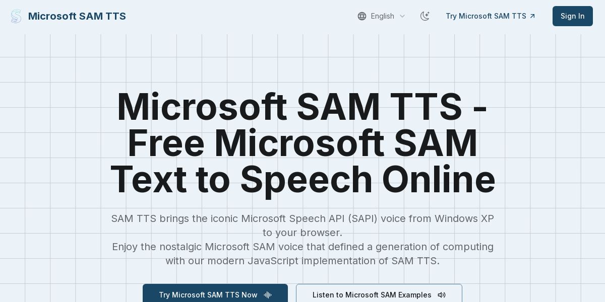 SAM TTS brings the beloved Microsoft SAM voice back to life with a lightweight, browser-based synthesizer. Create authentic SAM Text to Speech output with adjustable settings for pitch, speed, mouth, and throat. Perfect for retro projects, games, and creative applications.