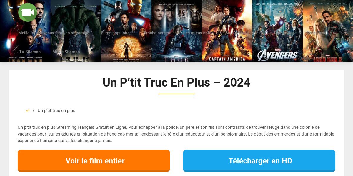 Un p’tit truc en plus Streaming Français Gratuit en Ligne, Pour échapper à la police, un père et son fils sont contraints de trouver refuge dans une colonie de vacances pour jeunes adultes en situation de handicap mental, endossant le rôle d’un éducateur et d’un pensionnaire. Le