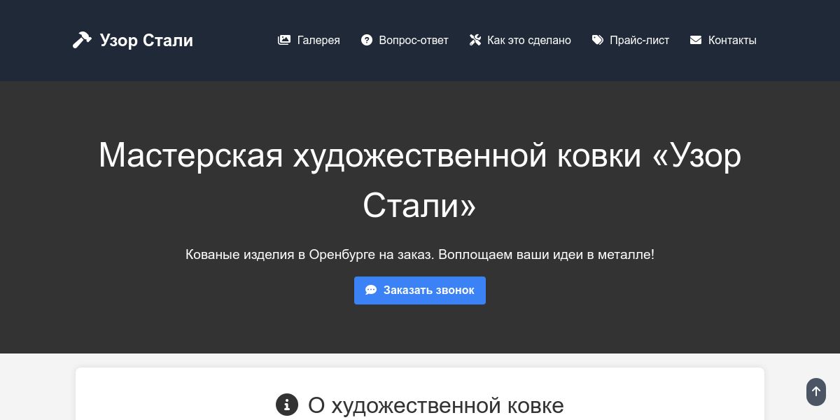 Мастерская художественной ковки «Узор Стали». Она широко используется в архитектуре, создавая ощущение грандиозности и изысканности. Кованые изделия в Оренбурге на заказ. Воплощаем ваши идеи в металле!